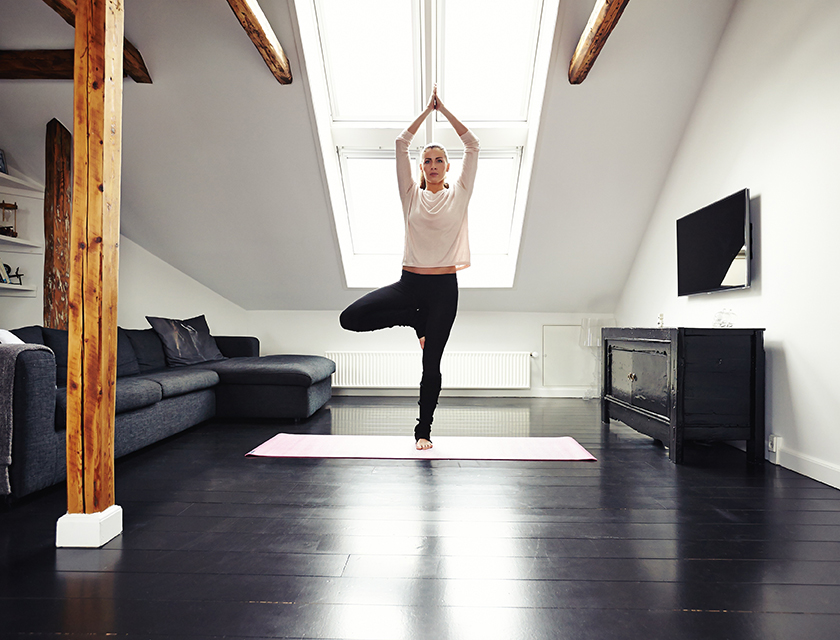 Frau Macht YogaÜbung Daheim