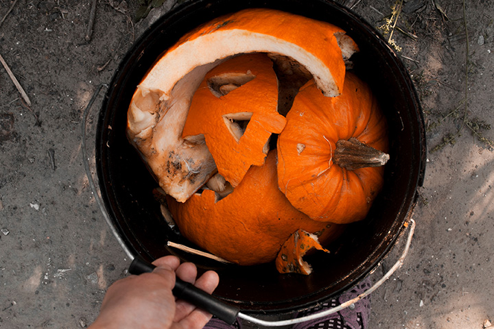 Schaffen Sie mit ausgehöhlten und beleuchteten Kürbissen einen stimmungsvollen Lichtschein.
