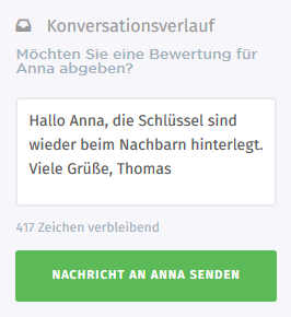 Sie haben ganz vergessen, dass Sie gar nicht Zuhause sein werden, um Ihrer Reinigungskraft aufzuschließen? Mit der neuen Chat-Funktion, die in Ihrem Benutzerkonto eingebettet ist, können Sie direkt und ohne Umwege miteinander kommunizieren. Teilen Sie Ihrer Reinigungskraft einfach mit, wo Sie den Schlüssel für sie hinterlegt haben. Sie wollen lieber telefonieren oder ihre Termine per SMS abklären? Auch kein Problem – die Telefonnummer Ihrer Reinigungskraft finden Sie nun in Ihrem Benutzerkonto.