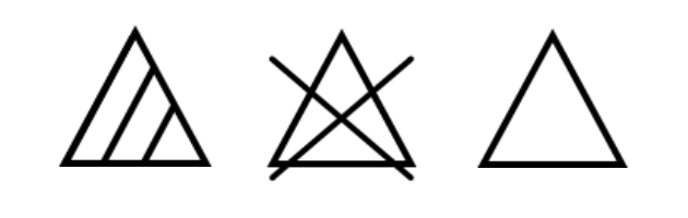 Bleich Bleich, Baby: Ein Dreieck verweist auf das Bleichen. Hat das Dreieck zwei schräge Linien, ist nur das Bleichen mit Sauerstoff erlaubt. Ist das Dreieck durchgestrichen, darf überhaupt nicht gebleicht werden. Das schließt auch bleichmittelhaltige Waschmittel, wie z. B. Vollwaschmittel, ein.