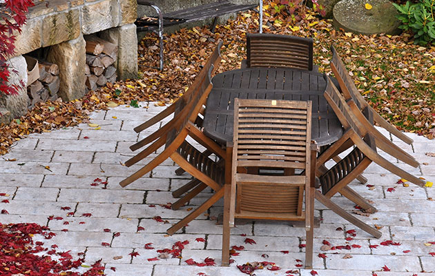 Nach dem Sommer warten auch Ihre Gartenmöbel auf eine vorwinterliche Pflegekur. Entfernen Sie mit Naturseife und einem Baumwolltuch klebrige Blütenreste sowie erstes Laub. Ein Geheimtipp, um das Holz zu imprägnieren: Weichspüler! Mit Wasser verdünnt bildet der Weichspüler einen dünnen Schutzfilm auf den Möbeln und verbreitet einen angenehmen Frischeduft. So sind Ihre Möbel bestens gegen Feuchtigkeit und Nässe geschützt.
